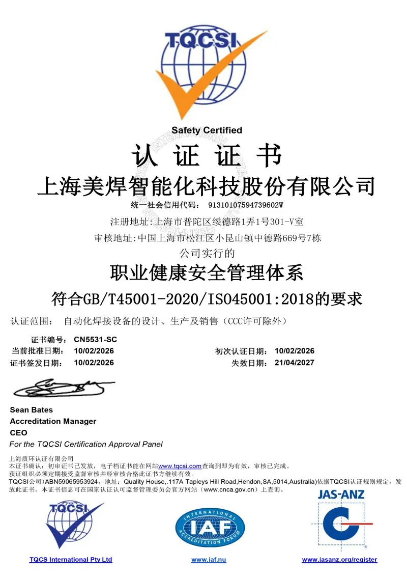 АО Шанхай Мэйхань Интеллектуальные Технологии было основано в 2012 году. Компания является национальным высокотехнологичным предприятием, шанхайским специализированным и передовым предприятием («чжуаньцзинтесинь»), а также компанией, котирующейся на Шанхайской фондовой бирже. Основная продукция включает автоматическое сварочное оборудование, такое как: сварочные аппараты для U-образных труб теплообменников, автоматические сварочные аппараты для открытых труб, сварочные аппараты для закрытых труб, автоматические сварочные аппараты для труб и листов, сварочные роботы, интегрированные источники сварочного питания и др. Мы – инновационная технологическая компания, которая специализируется на производстве интеллектуального автоматического сварочного оборудования, интегрированных источников сварочного питания, а также на технологиях интеллектуального производства с использованием 3D-печати. Придерживаясь бизнес-философии «Полностью ориентируемся на клиента, проектируем по потребностям, предоставляем комплексные услуги без аутсорсинга», мы сосредоточены на инновациях и разработках, обработке и производстве, маркетинге и послепродажном обслуживании. Мы постоянно занимаемся исследованиями, инновациями и оптимизацией, чтобы предоставлять клиентам совершенные технические решения и услуги с высокой добавленной стоимостью.